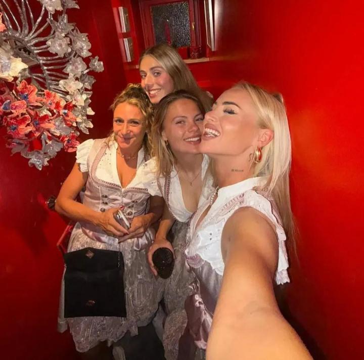 《太阳报》指出,分手后的莱曼状态良好,她在社交媒体上分享了与科莫女足队友亚历克斯-克尔、贝格森以及佩策尔贝格尔一同参加啤酒节的照片,展现出愉悦的心情。由于上周末没有比赛安排,莱曼与队友们决定前往慕尼黑,感受这场盛大的啤酒节。她当天穿着巴伐利亚传统连衣裙,而裙子上的一个细节似乎暗示了她当前的单身状态——她将腰间的粉色蝴蝶结系在了身体左侧。